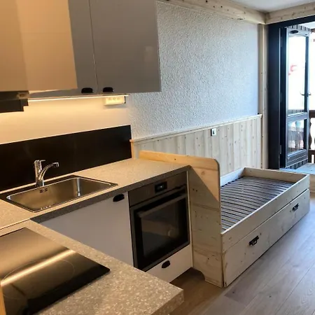 Residence Hauts De Vanoise - Studio Pour 2 Personnes 18アパ-トメントには,器具でいっぱいの台所,バルコニ-,コ-ヒ-/紅茶メ-カ- とテレビ付きの客室があります. Les Balconsバスステ-ションまで徒歩5分,Residence Hauts De Vanoise - Studio Pour 2 Personnes 18からムレル-ジュまで6キロです.